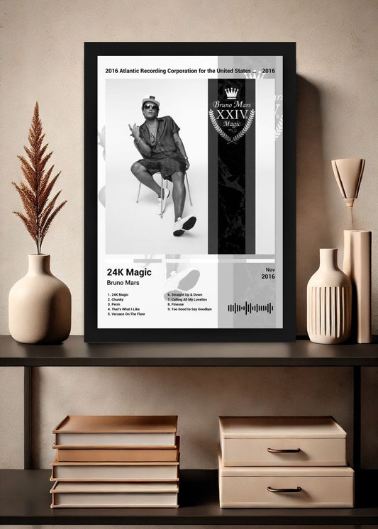Quadro Bruno Mars 24K Magic (Black&white) Com Vidro