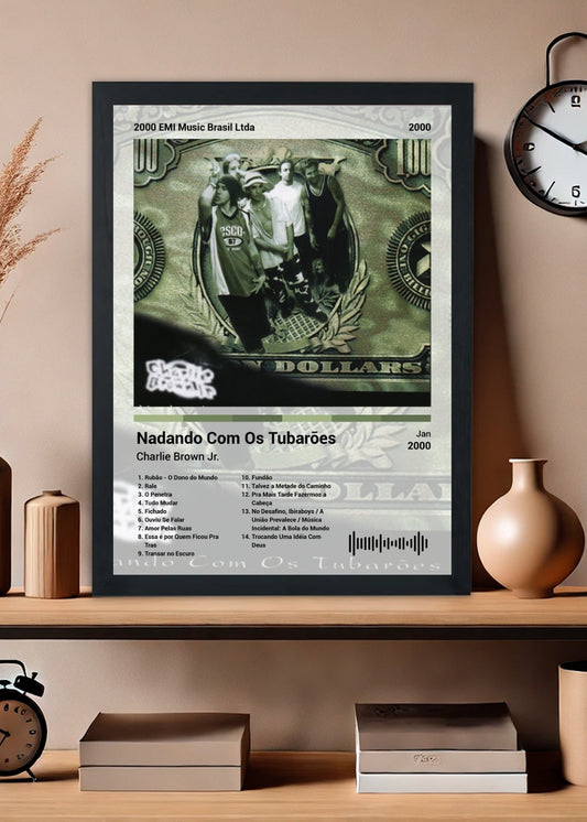 Quadro Charlie Brown Jr. Nadando Com Os ... (Dark) Com Vidro