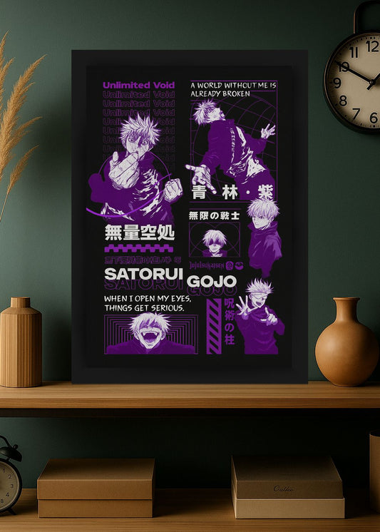Quadro Satoru Gojo Jujutsu Kaisen Com Vidro e Moldura