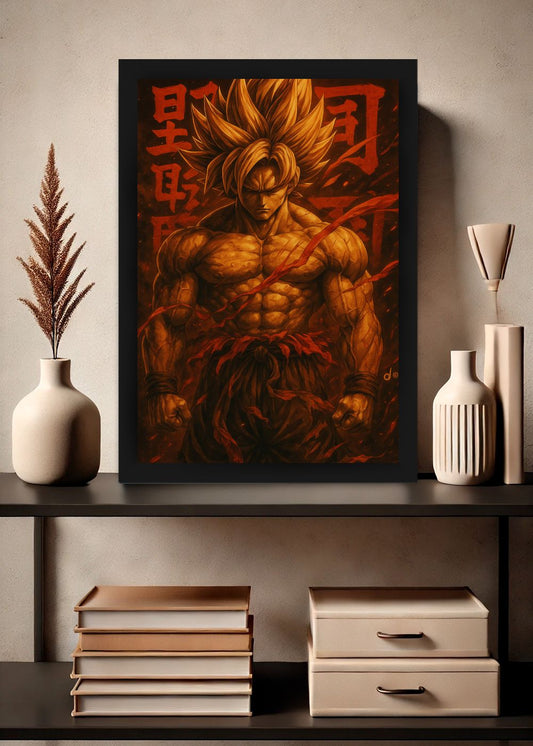 Quadro Goku Aura Dragon Ball Com Vidro e Moldura