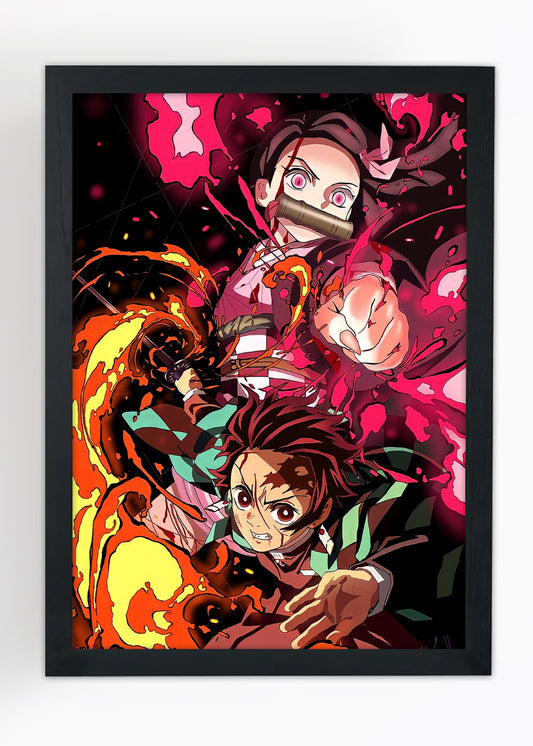 Quadro Decorativo Os irmãos do fogo Demon slayer - Com vidro