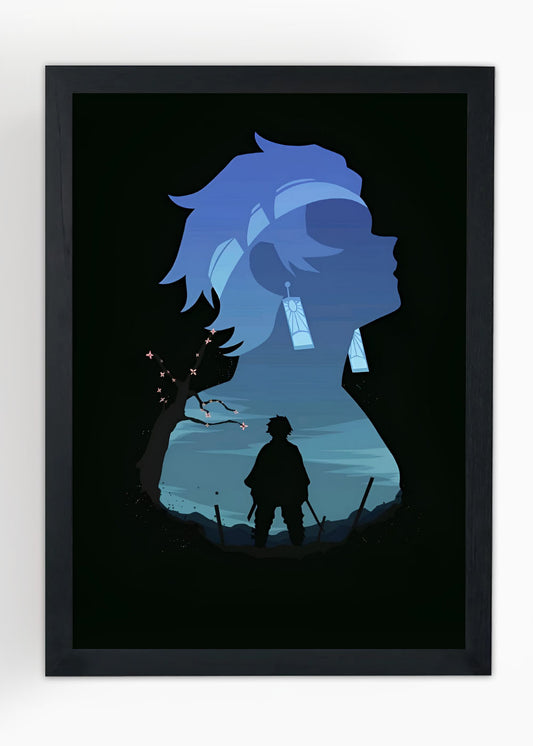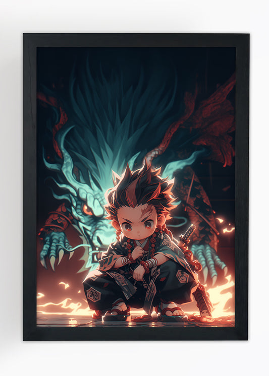 Quadro Decorativo Tnajiro pequeno - Demon slayer - Com vidro