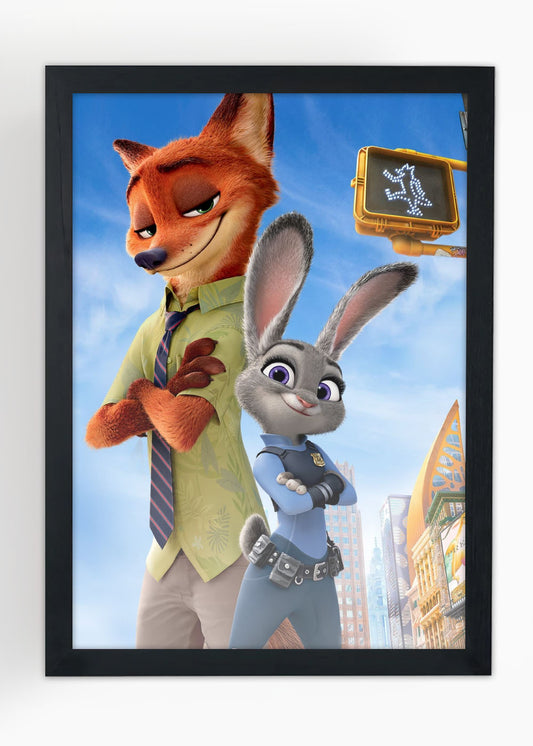 Quadro Decorativo Zotopía a coelha e o raposo - Com vidro