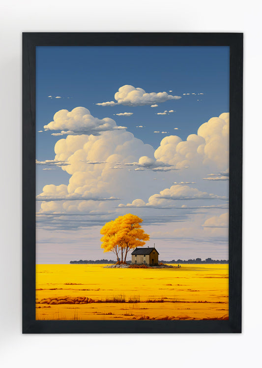 Quadro Decorativo Paisagem Amarela - Com vidro