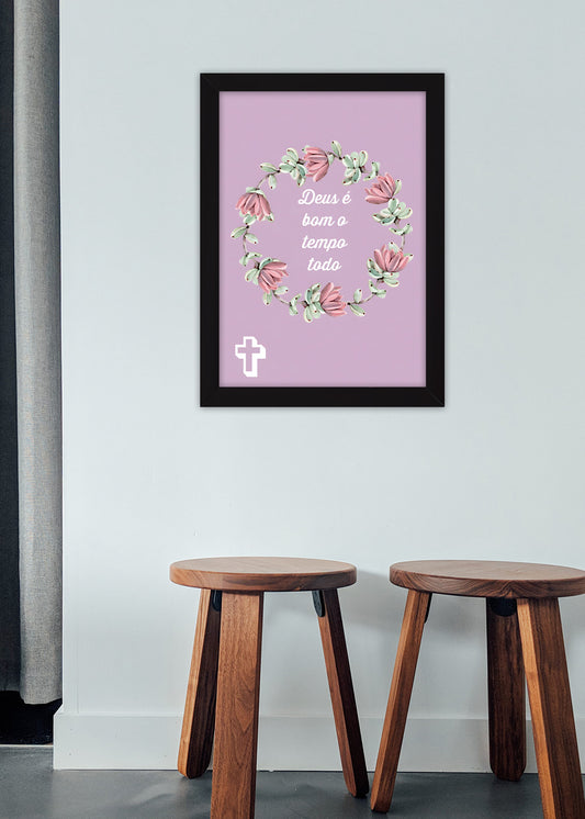 Quadro Deus é bom a tempo todo - religioso - Com vidro