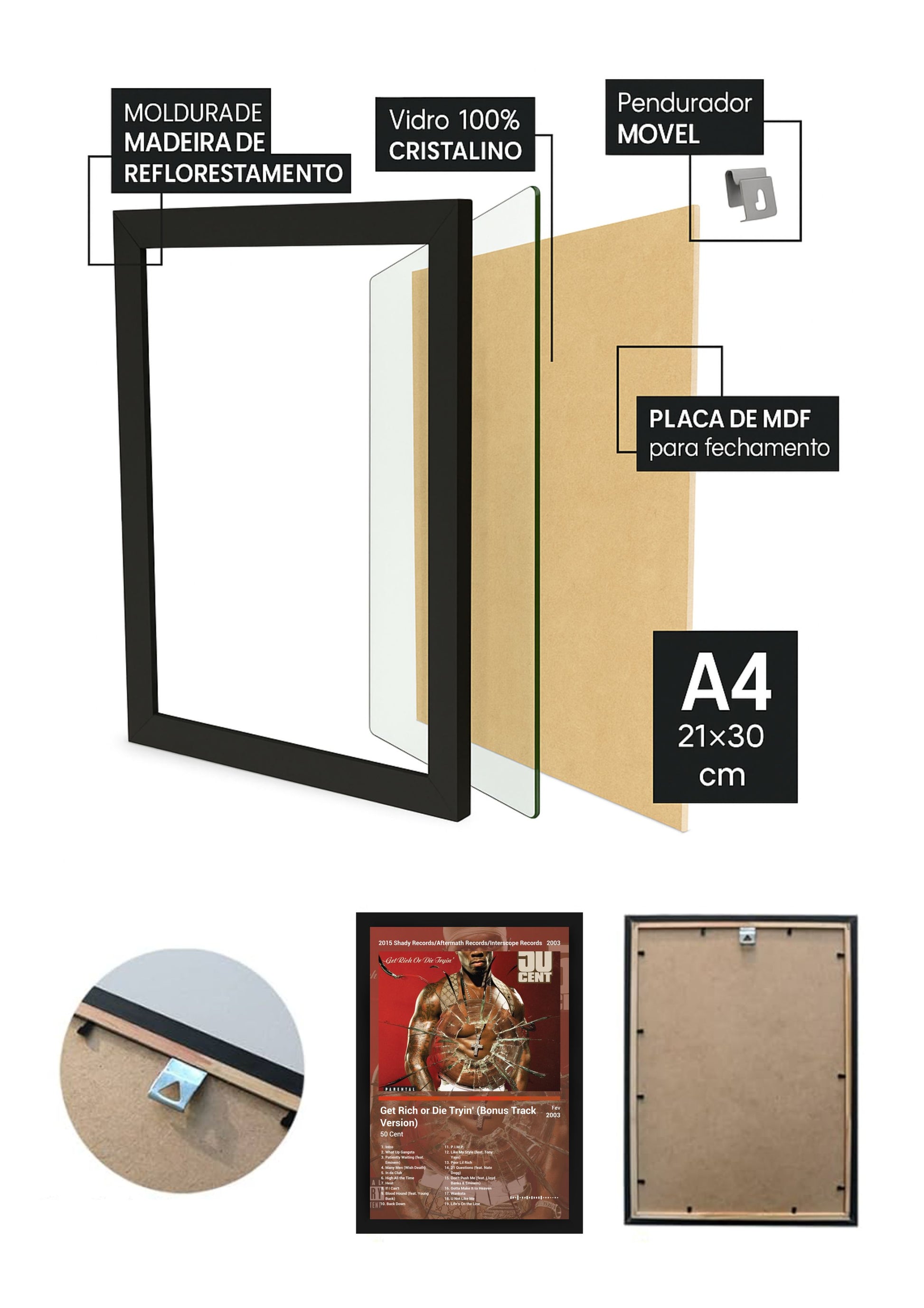 - Moldura: Madeira de reflorestamento (100% madeira)