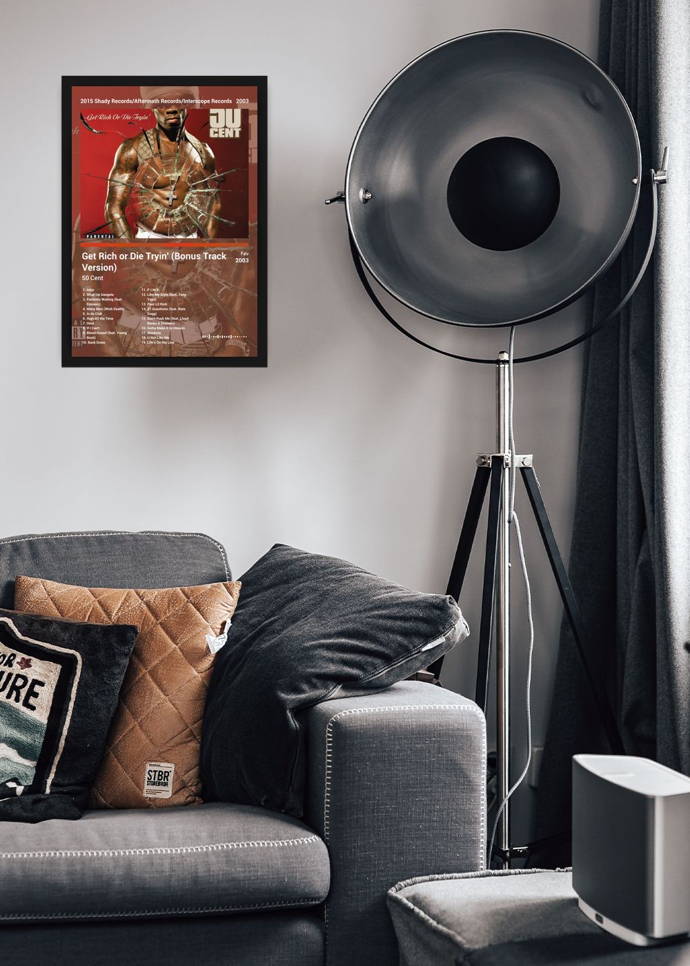 Quadro 50 Cent Get Rich or Die Tryin (Colored) Com Vidro