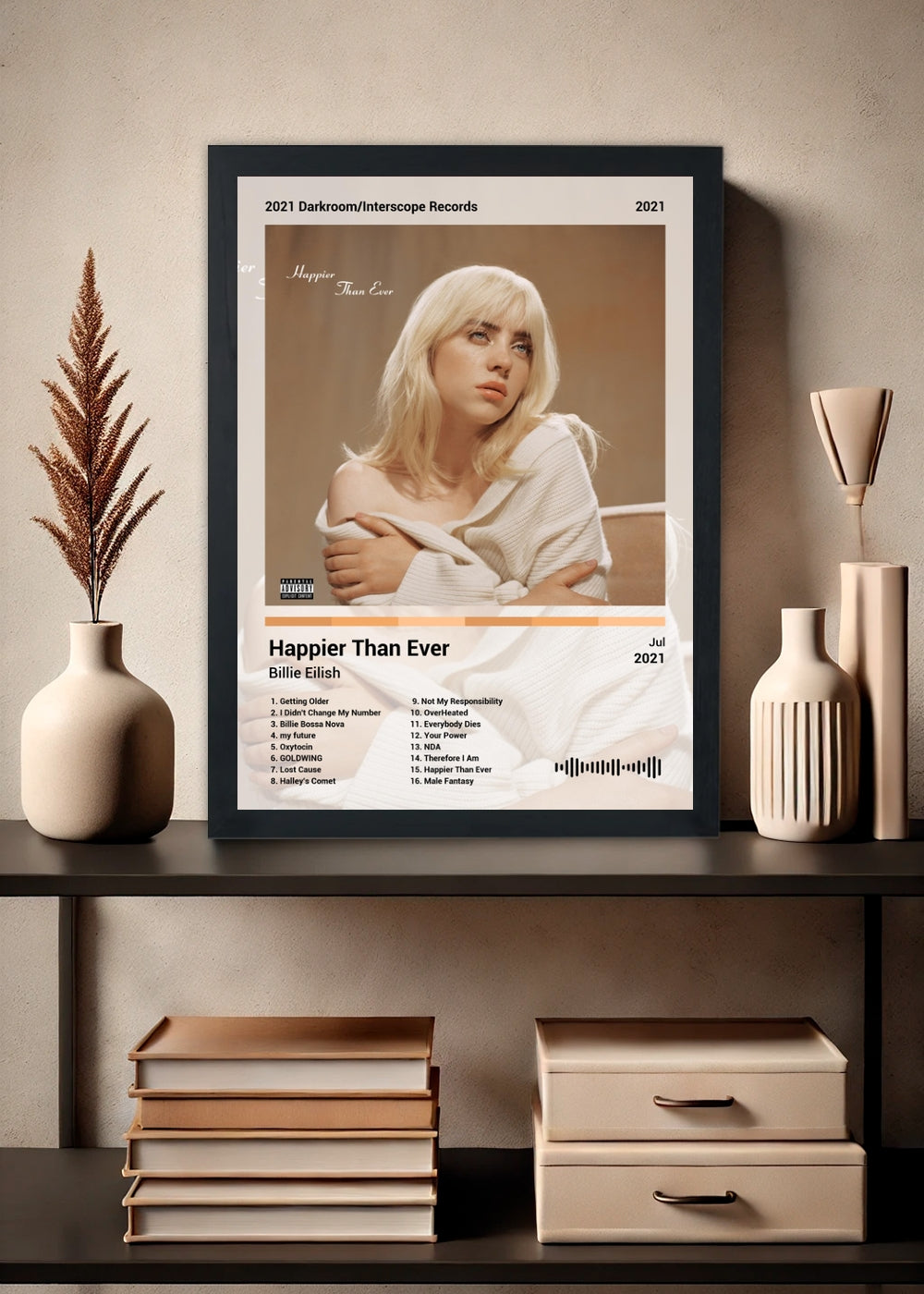 Quadro Billie Eilish Happier Than Ever (Light) Com Vidro