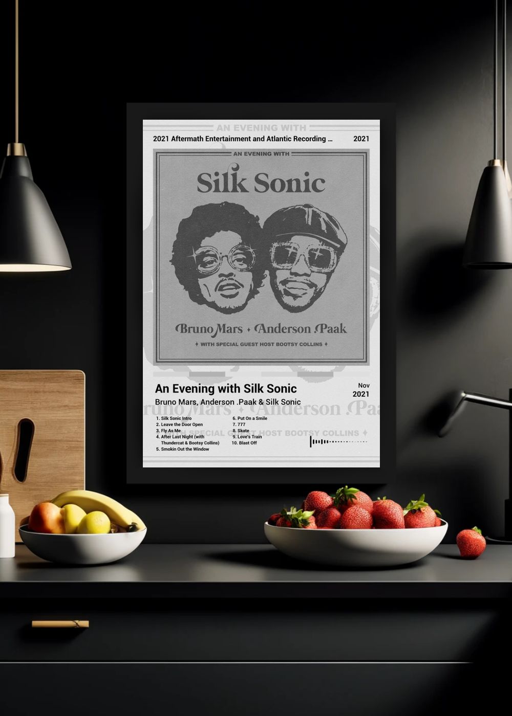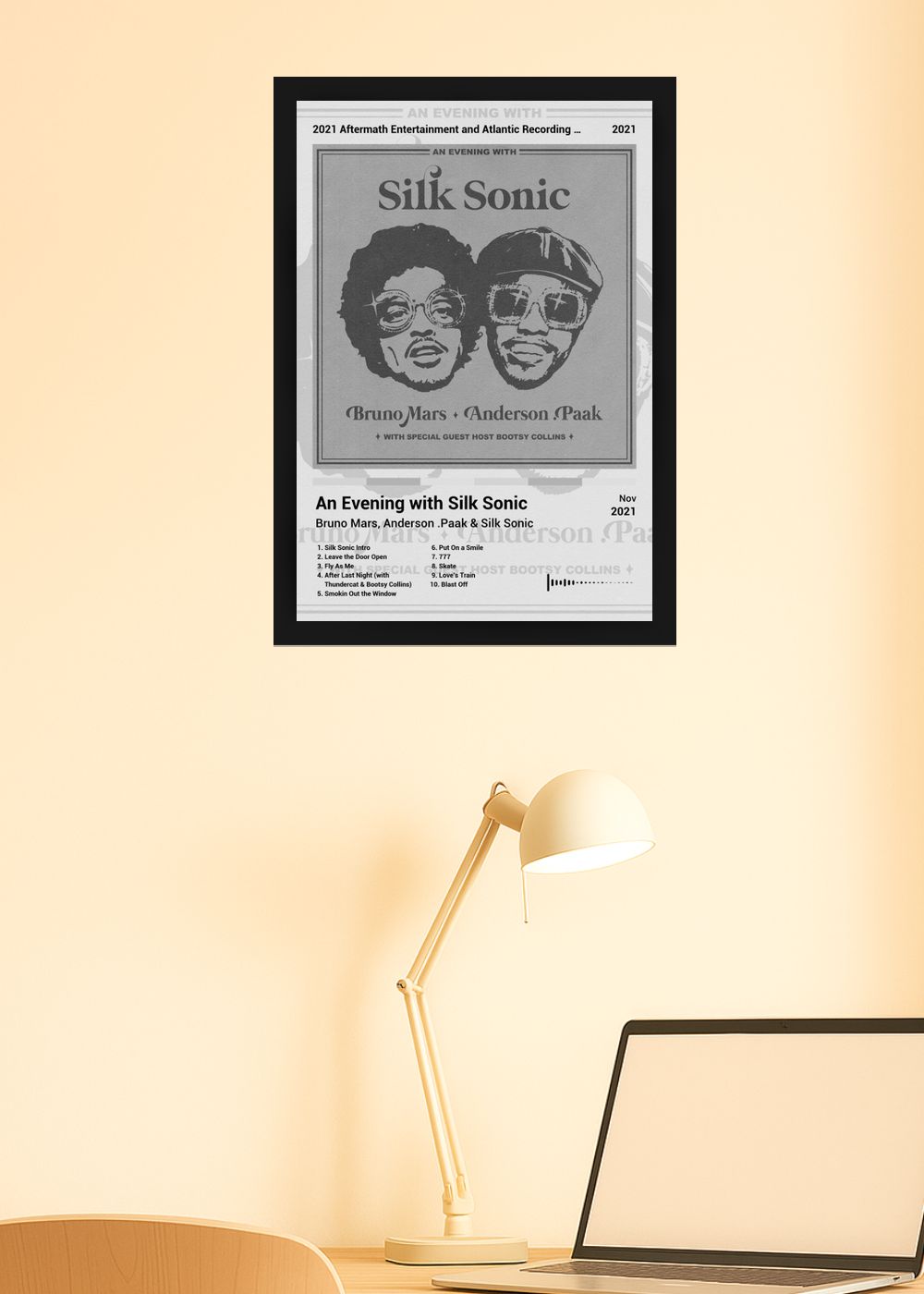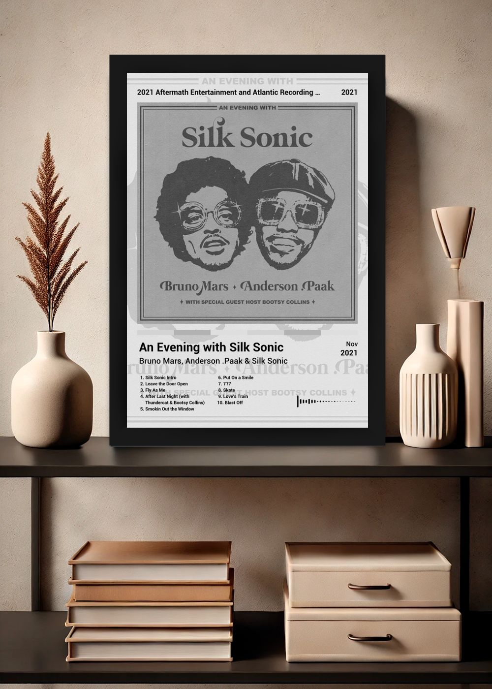 Quadro Bruno Mars An Evening with... (Black&white) Com Vidro