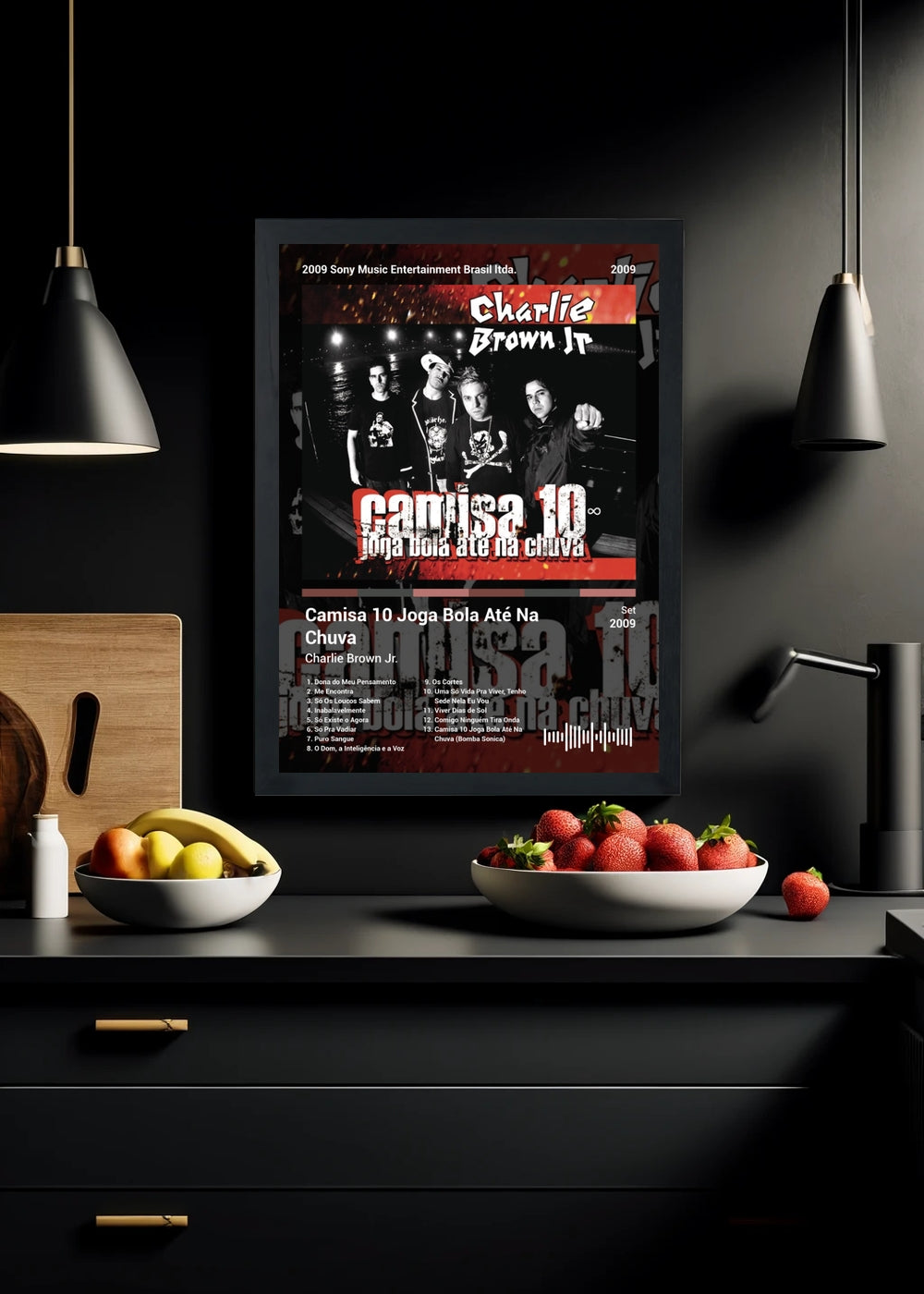 Quadro Charlie Brown Jr. Camisa 10 Joga ... (Dark) Com Vidro