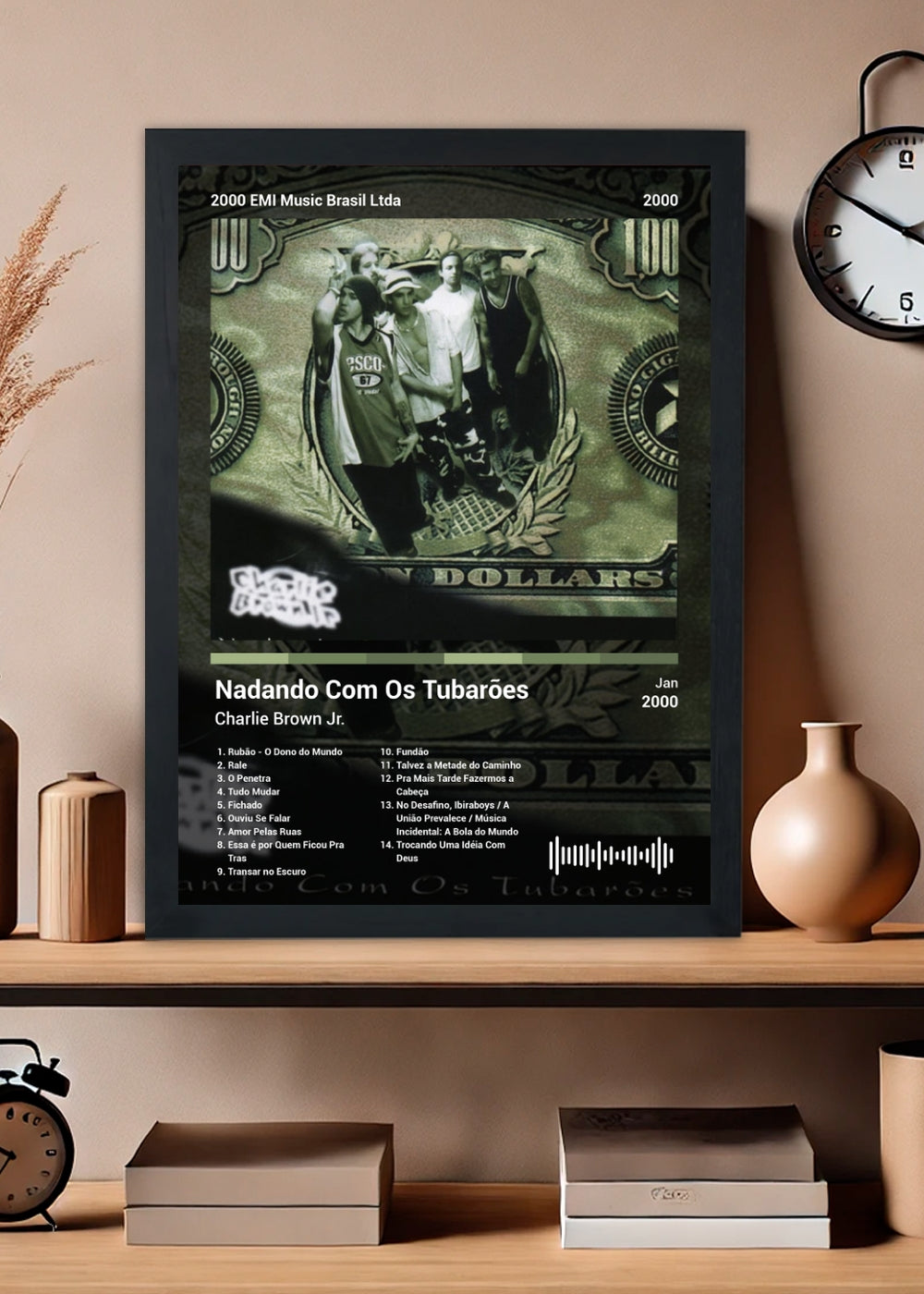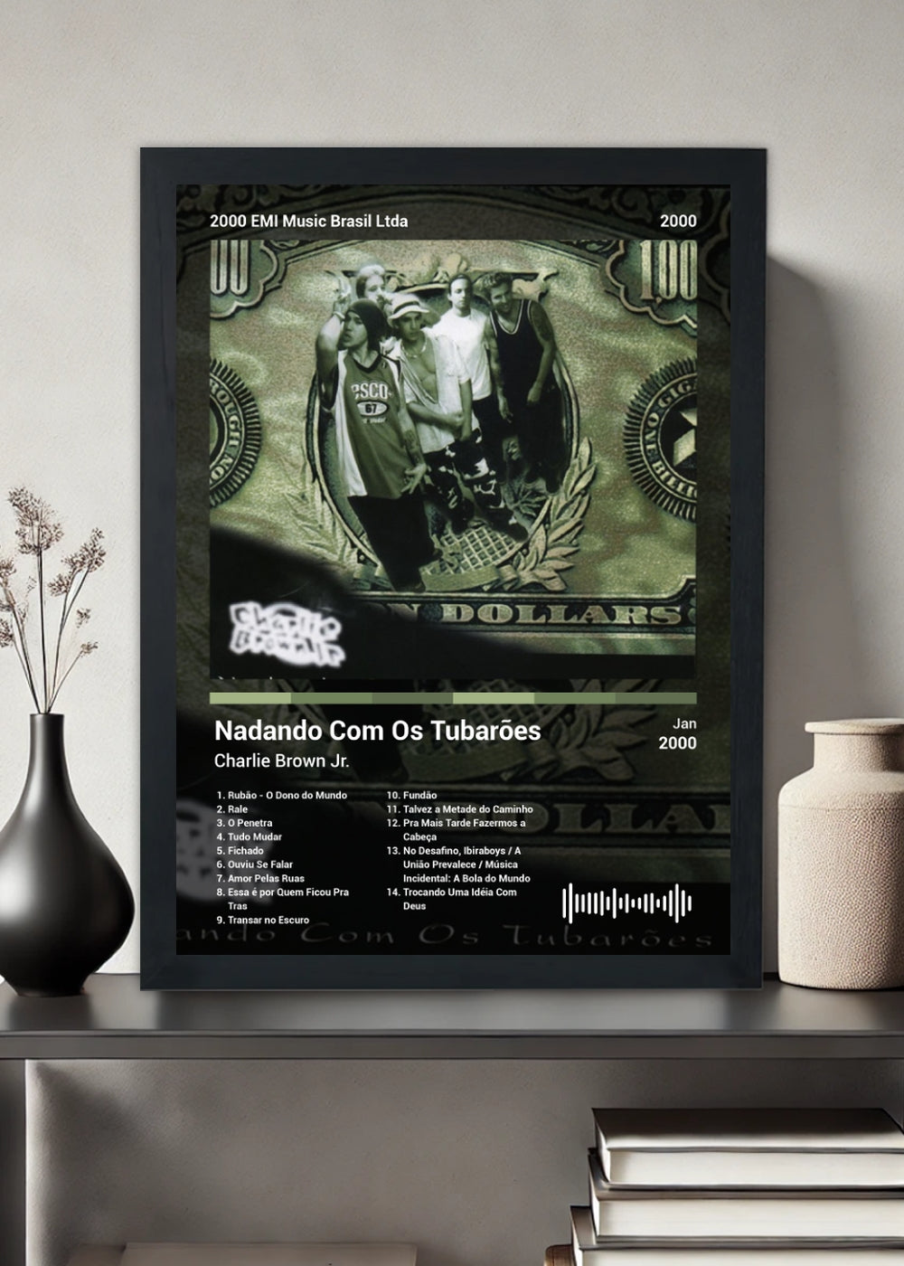 Quadro Charlie Brown Jr. Nadando Com Os ... (Dark) Com Vidro