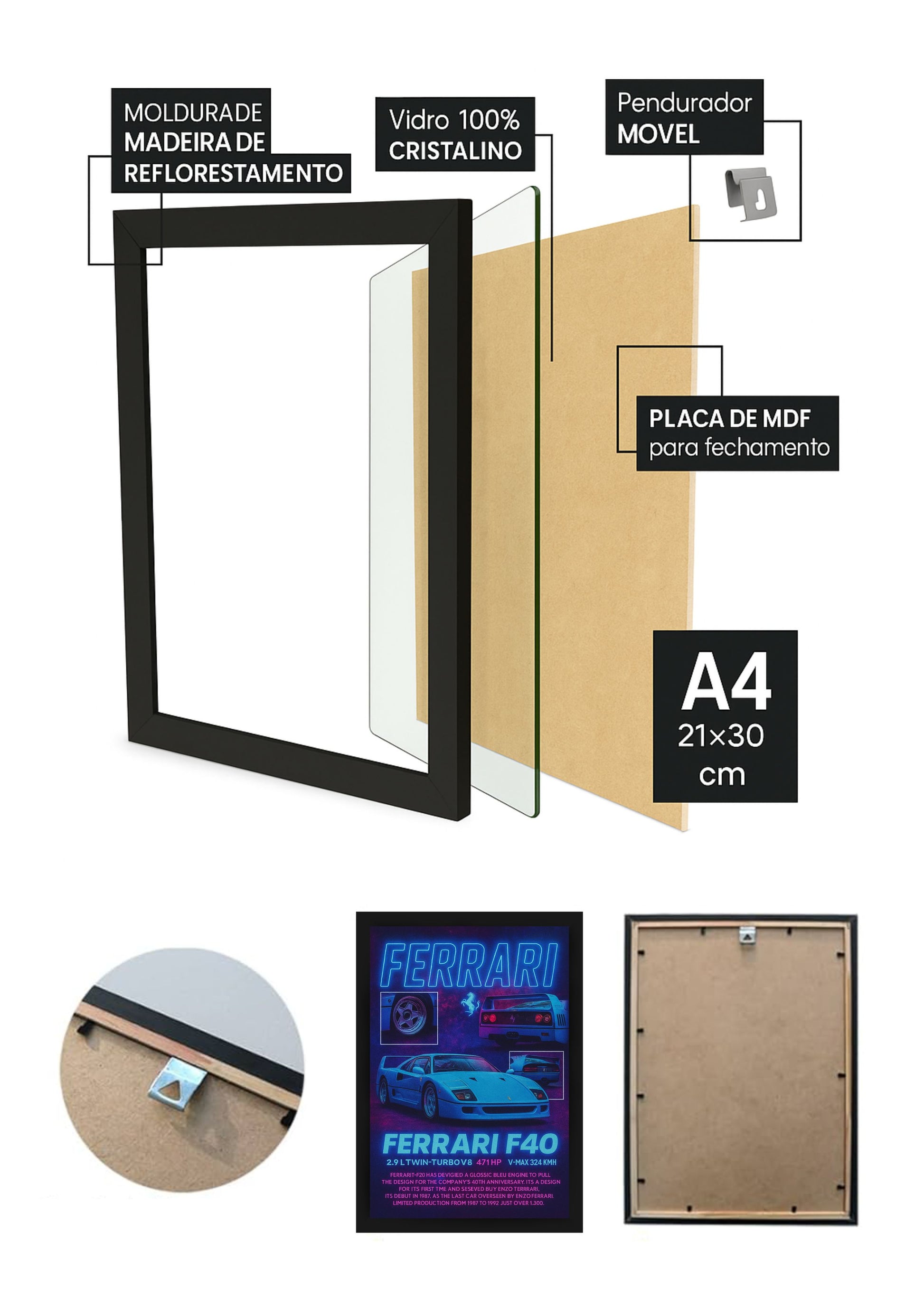 • Moldura feita de madeira de reflorestamento (100% madeira)
