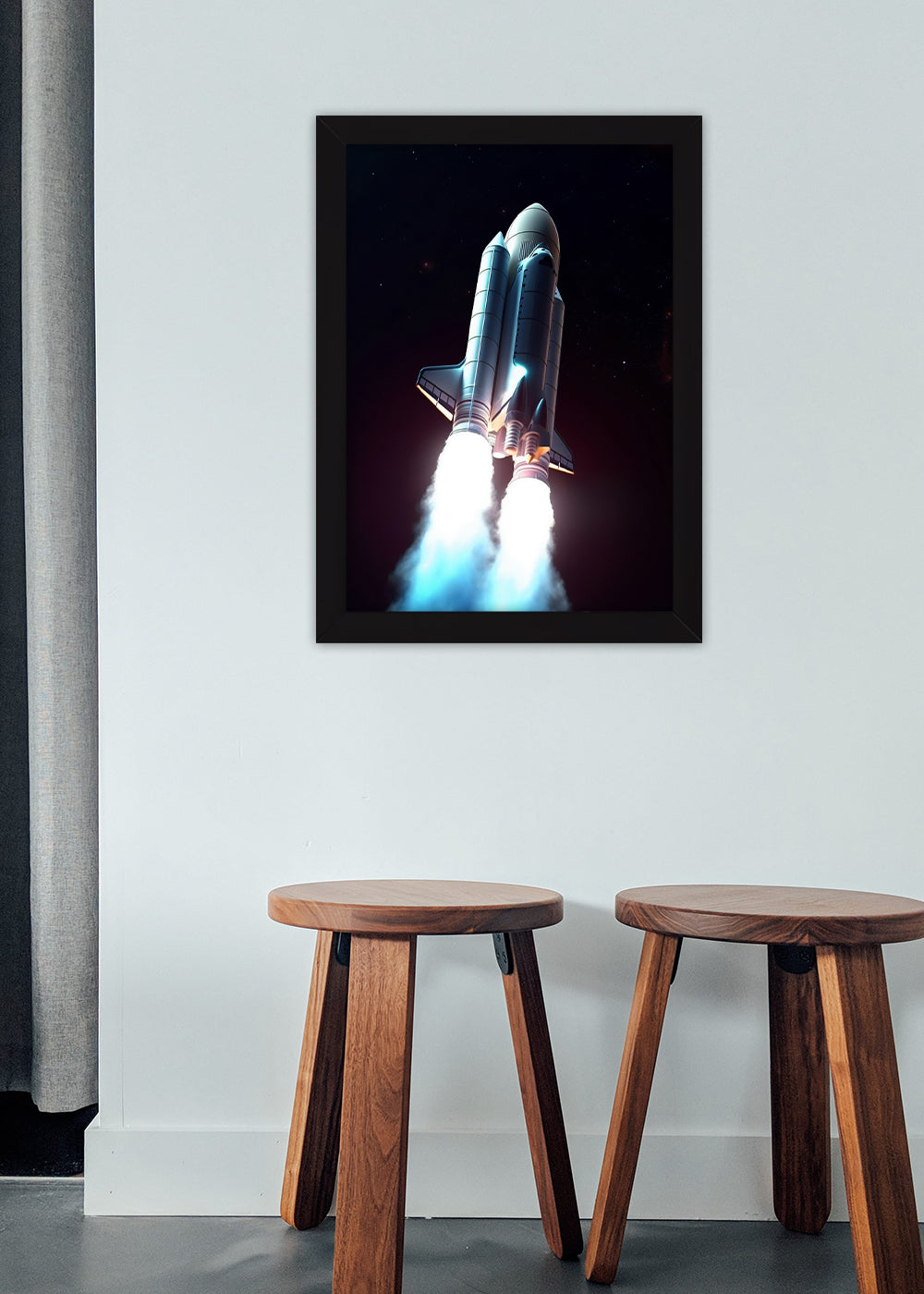 Quadro Decorativo Foguete Abstrato - Com vidro