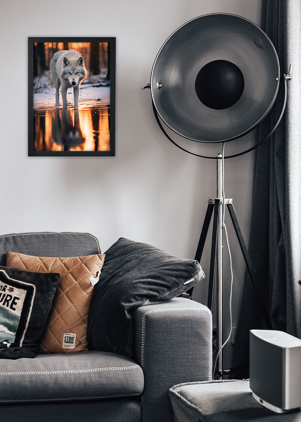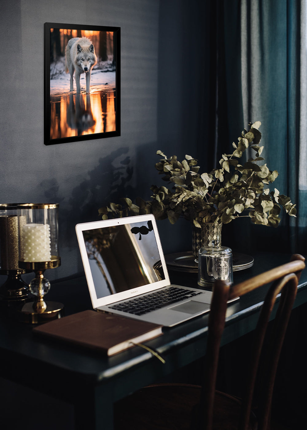 Quadro Decorativo lobo de neve - Animais - Com vidro