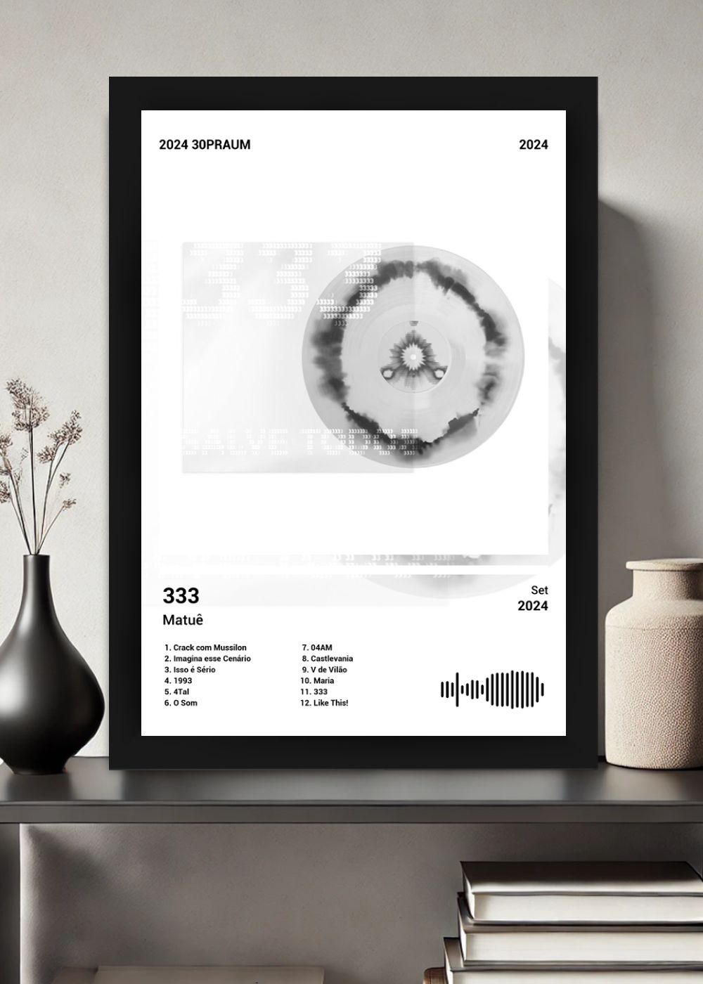 Quadro Decorativo Matuê 333 (Black&white) Com Vidro
