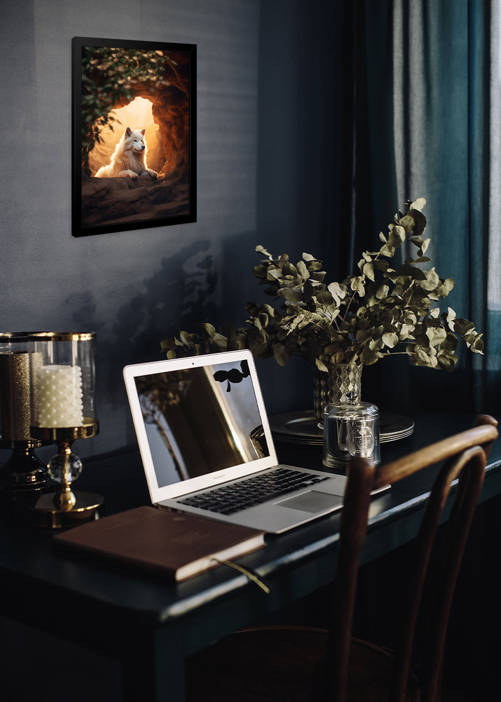 Quadro Decorativo o lobo branco - Animais - Com vidro