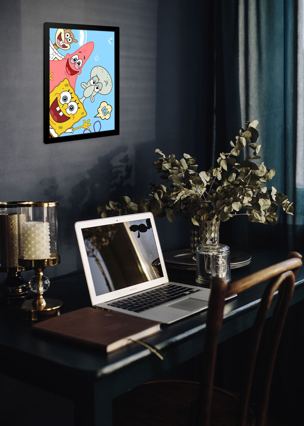 Quadro Decorativo Turma do Bob esponja - Com vidro