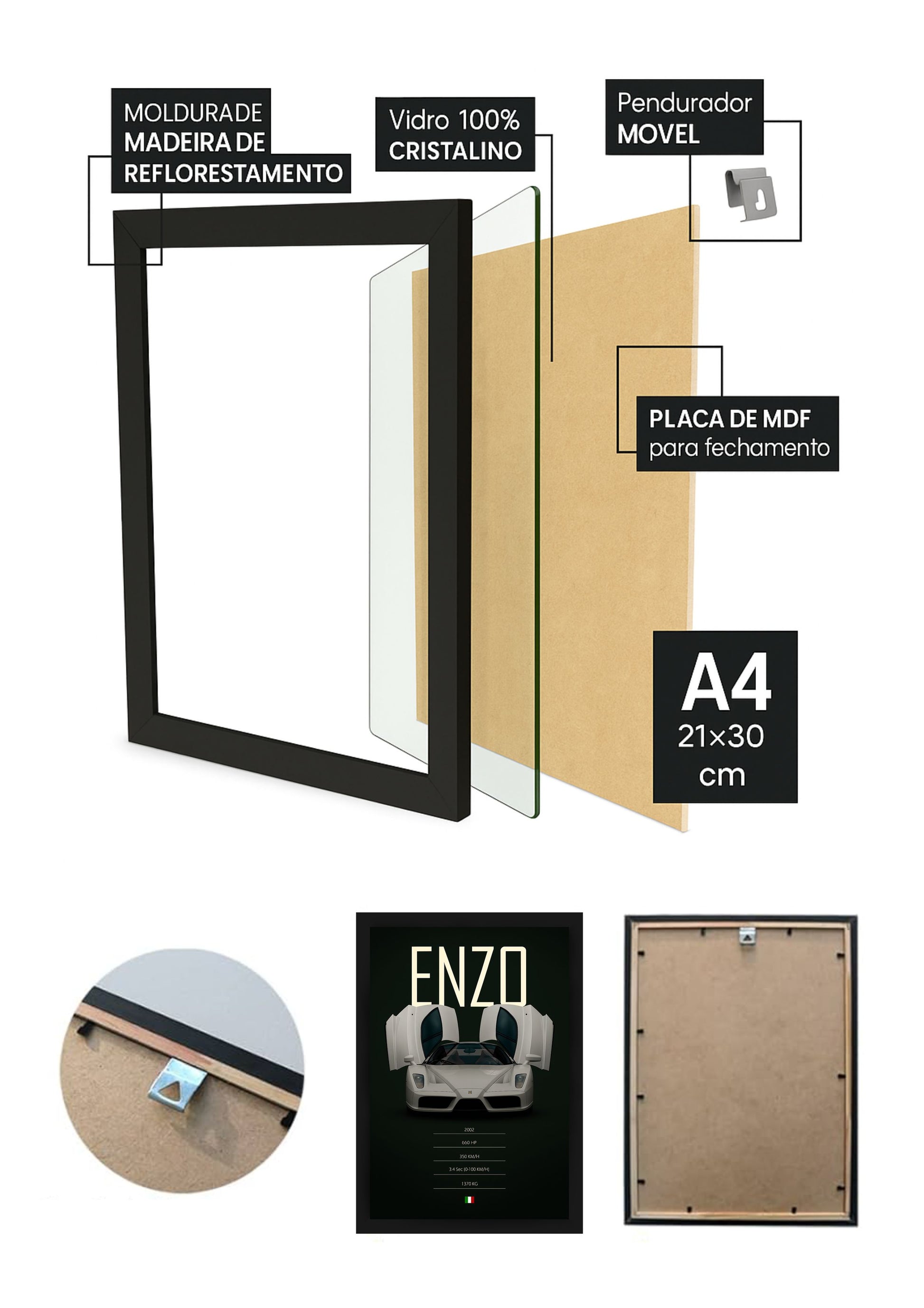 - Moldura: Madeira de reflorestamento (100% madeira)