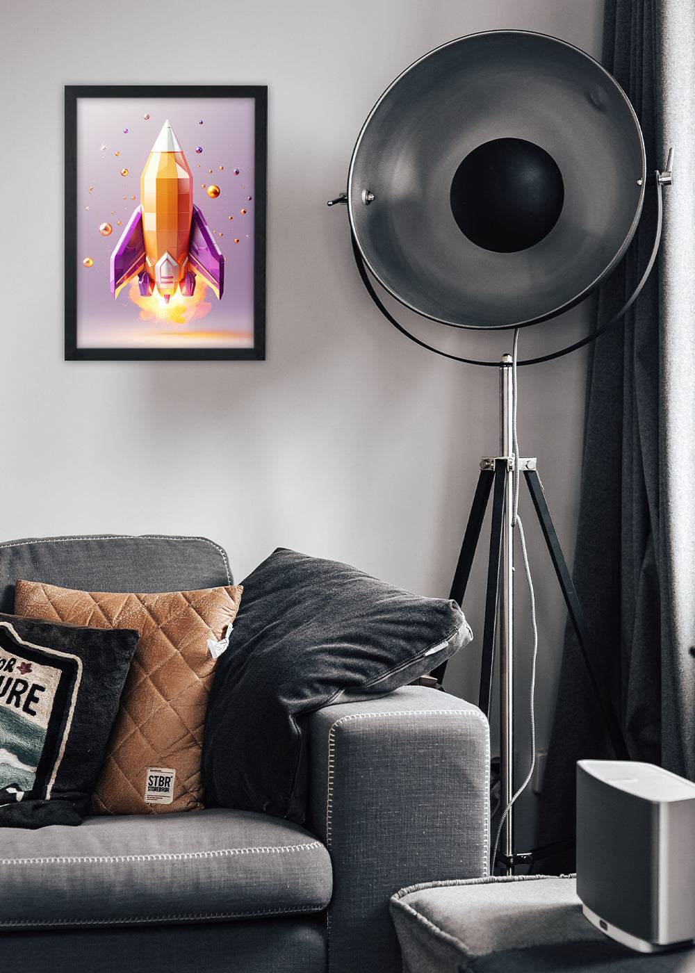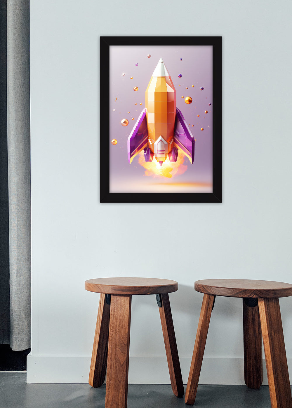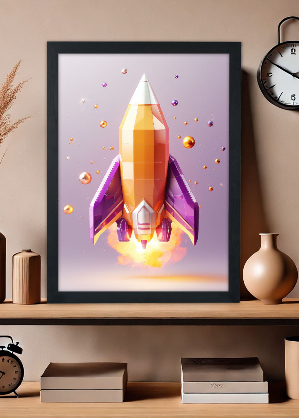 Quadro Foguete artistico levantando voo Abstrata - Com vidro