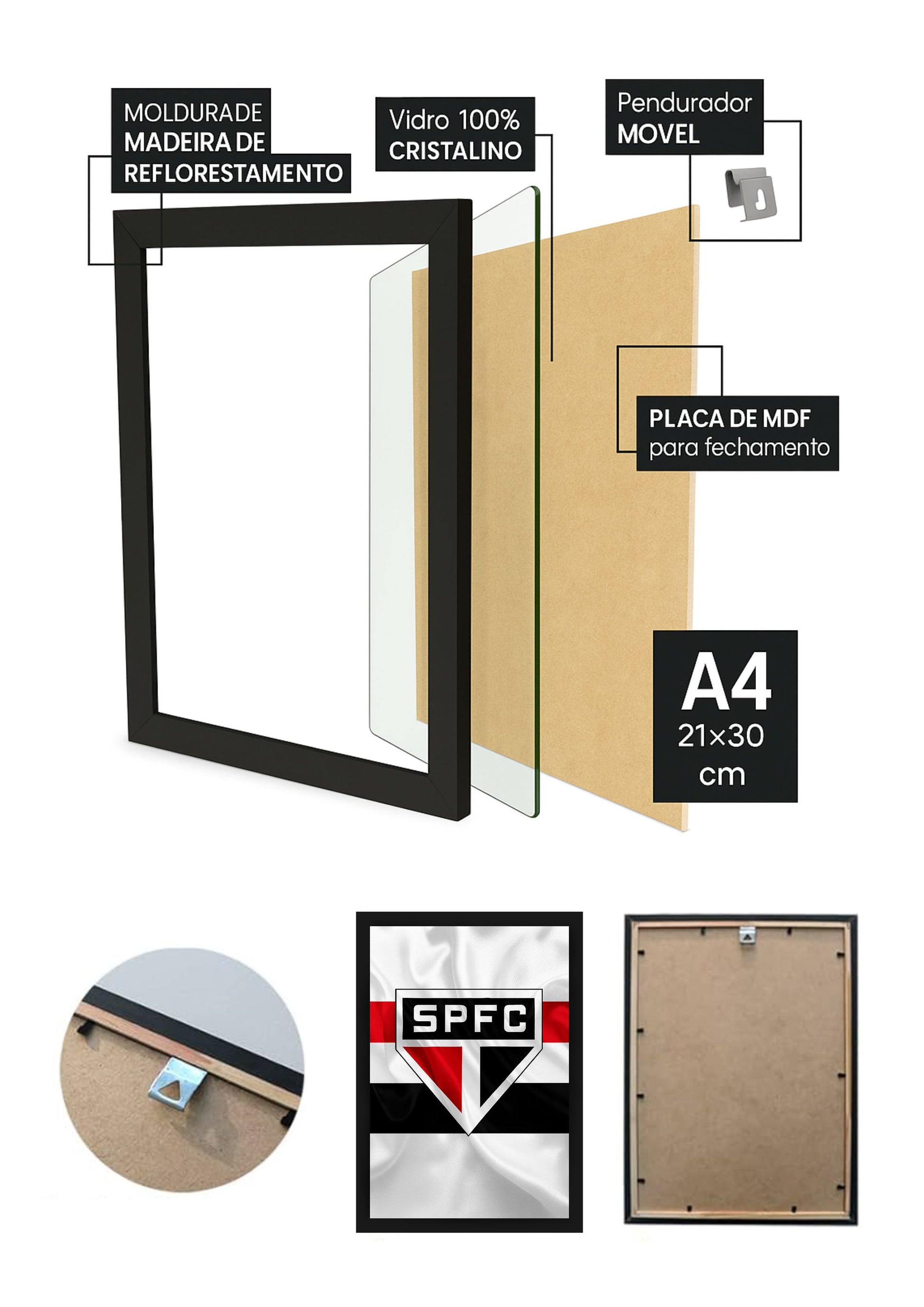 - Moldura: Madeira de reflorestamento (100% madeira)